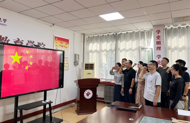 最后,举行了教师宣誓仪式。全体教师整装肃立,仪态端庄,目光坚定,右手举拳,面向国旗,庄严宣誓。通过宣誓进一步增强了全体教师教书育人的责任感、使命感和荣誉感,为塑造立德树人、培根铸魂,坚守教育初心、担当教育使命的新时代好教师奠定了坚实的思想基础。